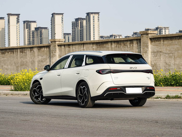 再来看车尾部分,车尾设计是海豹06 DM-i旅行版与三厢版最明显的区别。波浪回旋贯穿式LED尾灯是车尾的视觉中心,灯腔内部层次感十足,点亮后辨识度极高,与前脸灯光设计形成完美呼应。车顶末端的小型扰流板以及底部带扩散器样式的后包围,进一步增强了运动气息,让车尾看起来饱满而不臃肿。电动感应尾门的配备,让日常开启后备箱更加轻松,尤其当双手被行李占用时,只需轻轻一扫即可开启。后备箱常规容积达到670升,后排座椅支持4/6比例放倒,放倒后可形成全平的超大储物平台,容积扩展至1535升。