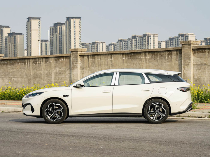 再来看车身侧面部分,车身侧面是旅行版的核心亮点,4850/1890/1505mm的长宽高尺寸,搭配2790mm的轴距,营造出修长低矮的车身姿态。车顶线条从B柱后方开始,以平缓克制的斜率向后延伸,顺滑衔接车尾,既保留了旅行车独有的优雅侧面轮廓,又最大化利用了车内空间。车顶配备贯穿式行李架,不仅提升了车辆的实用性,可轻松搭载露营装备、自行车等大件物品,还进一步强化了运动气质。车身采用半隐藏式门把手,有效降低风阻的同时,也让日常开门操作更加便捷。