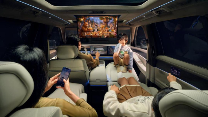 除了会玩几块屏,内饰部分最有意思的就是这个 Smart Surface 魔术屏。先不说这个和木纹内饰融为一体的设计,其实它的实用性也很强,就是可以当作后排乘客的外后视镜,防防开门刹很不错。